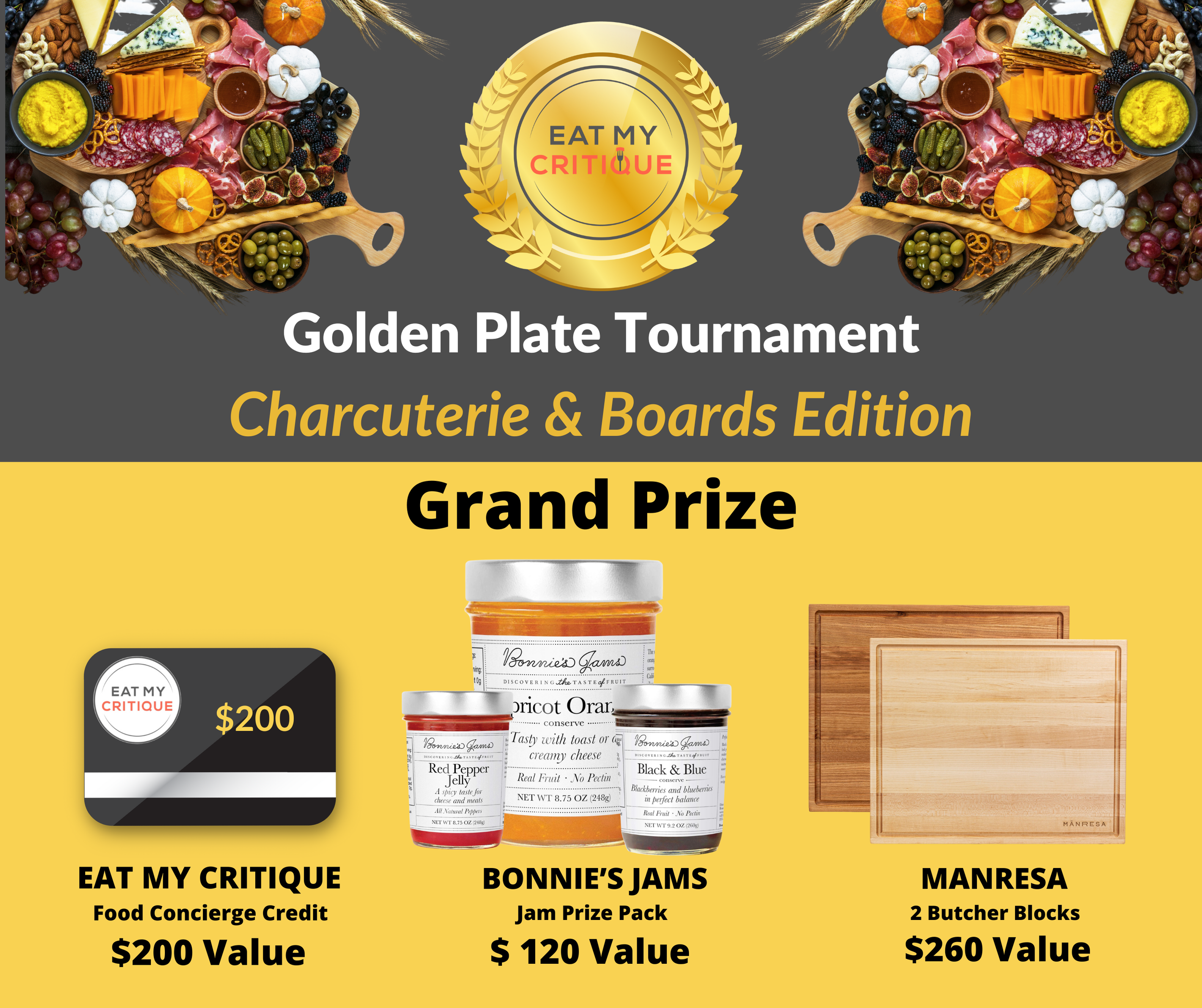 Please post 2 Instagram Stories about the Charcuterie & Boards Tournament between 12pm-1pm EST/9am-10am PT on Monday, October 9. Tag @eatmycritique in all stories. All the content necessary to create the stories will be dmed to you.